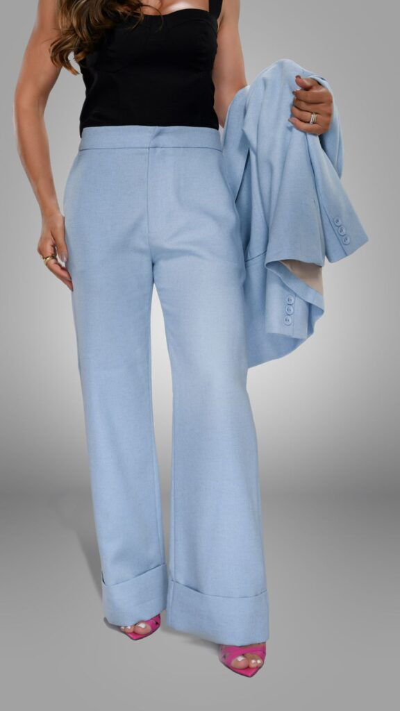 CALCA LINHO BARRADO AZUL