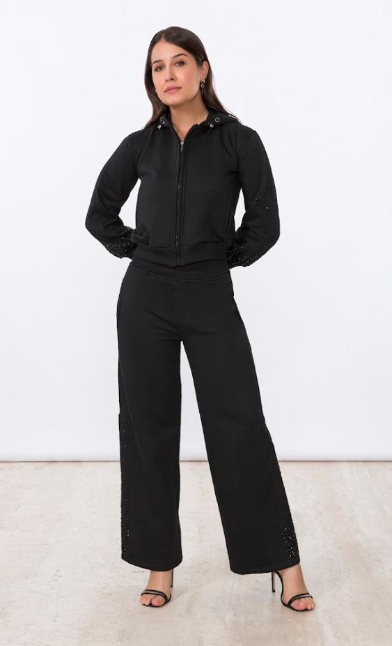 CONJUNTO MOLETOM PEDRARIA CRYSTAL PRETO