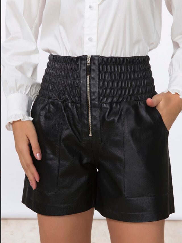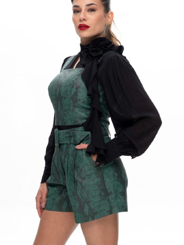 SHORTS COURO COM CINTO VERDE ANIMAL PRINT