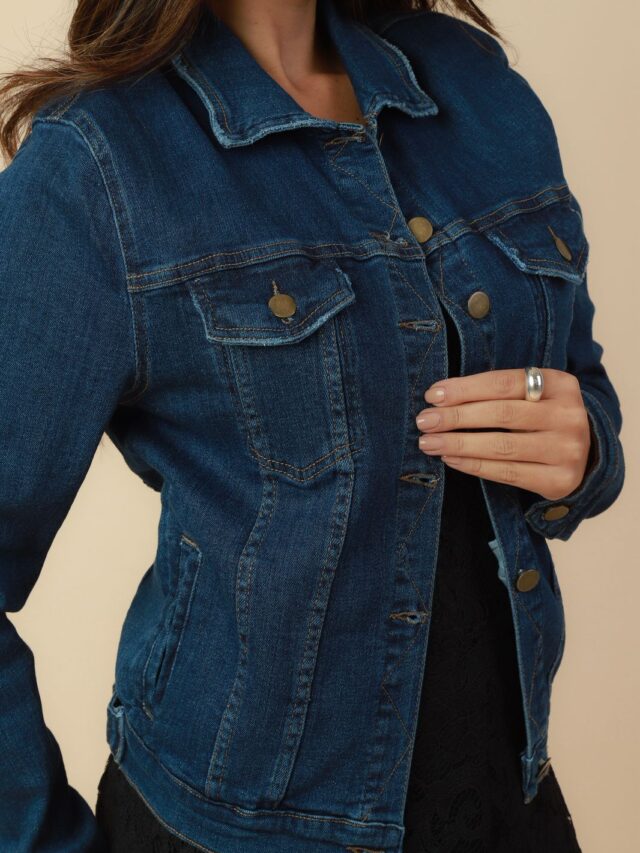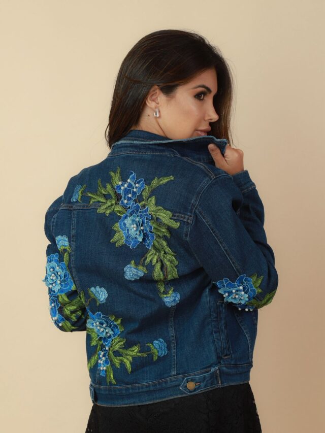 JAQUETA JEANS BORDADA ROSAS AZUIS
