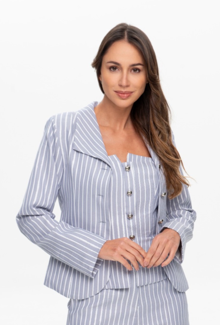 BLAZER ALFAIATARIA VICKY LISTRAS AZUL