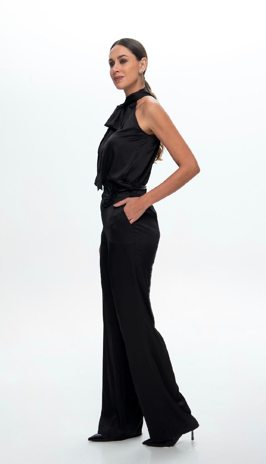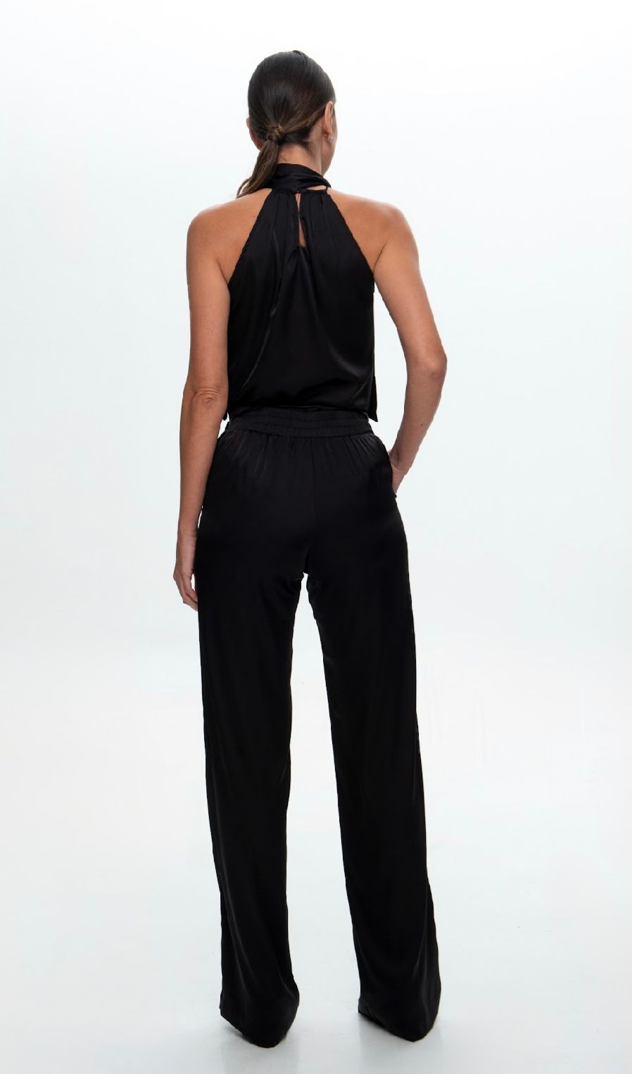 Apresentamos a Calça Lys Preta, confeccionada em tecido Lanvin (cetim com elastano), que une o brilho discreto do cetim com a flexibilidade do elastano para um caimento impecável e confortável. O elastano proporciona liberdade de movimentos sem abrir mão da elegância, calça forrada para ter segurança. Modelagem que valoriza a silhueta, peça versátil do casual chic ao formal.