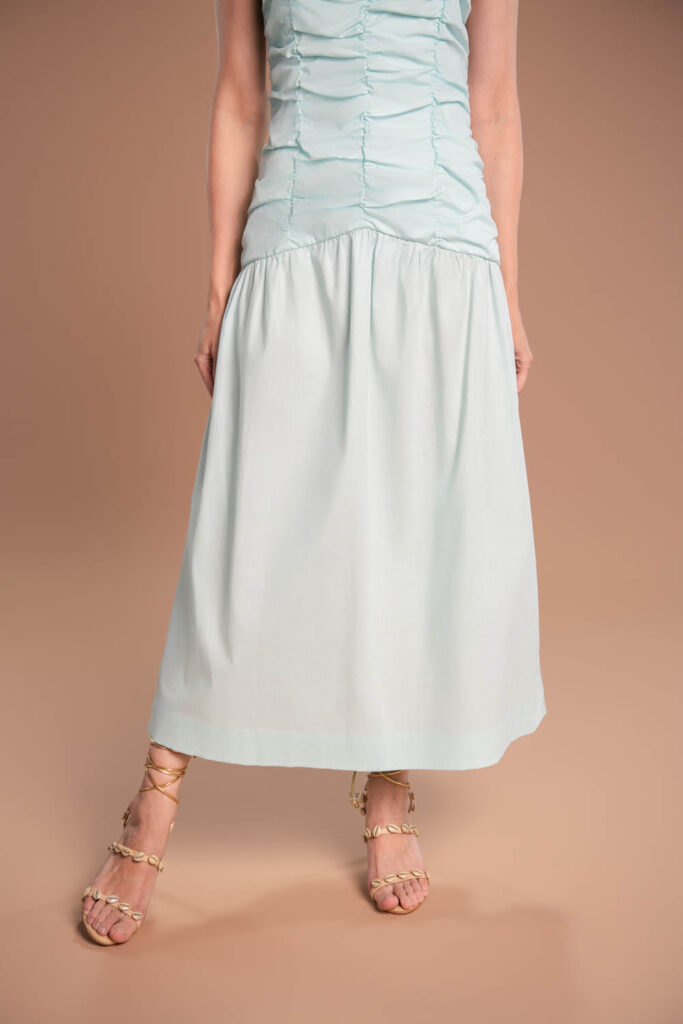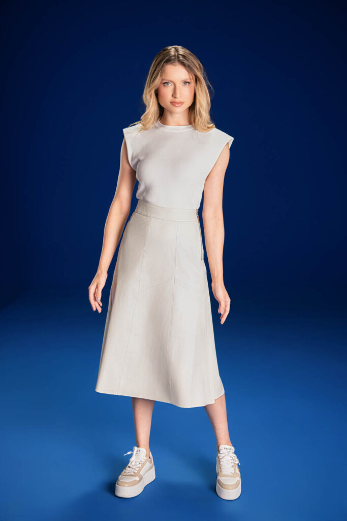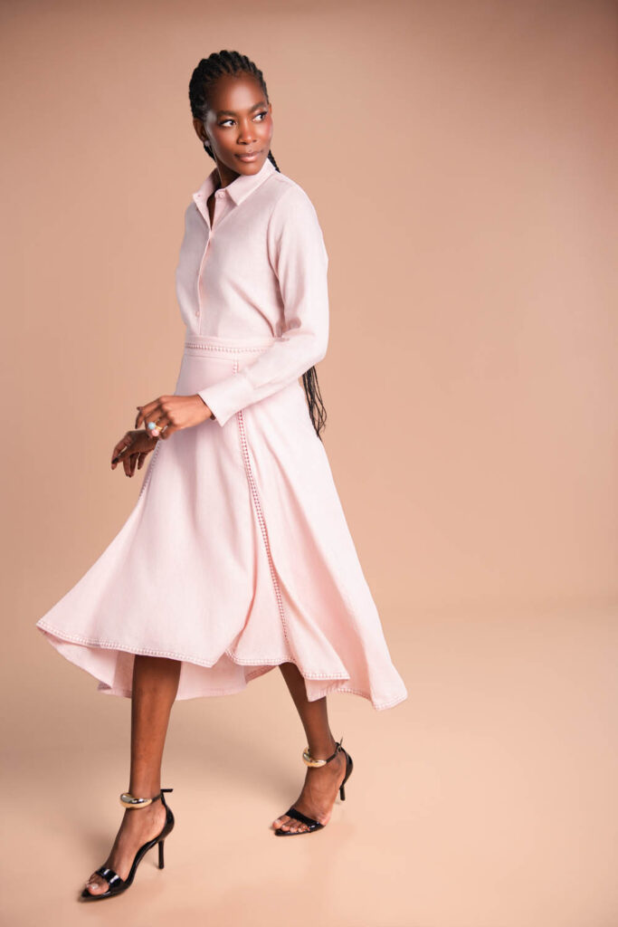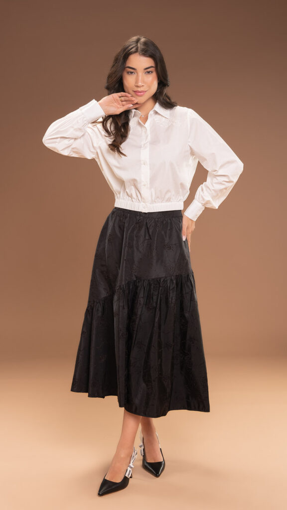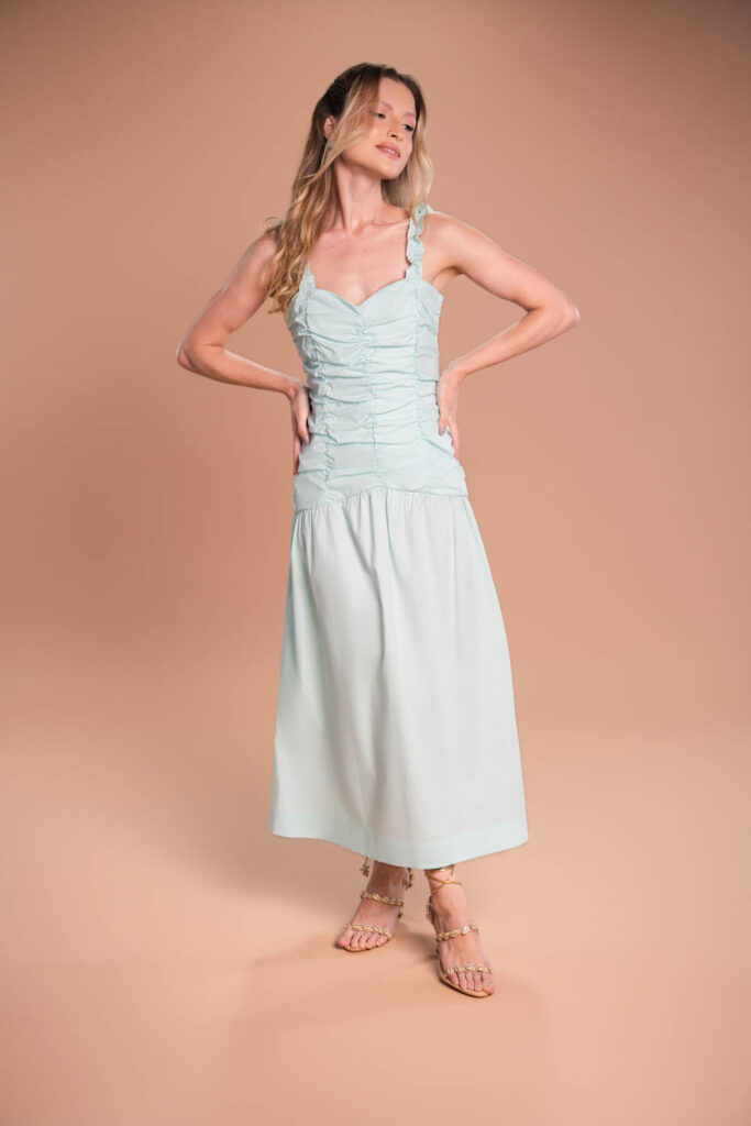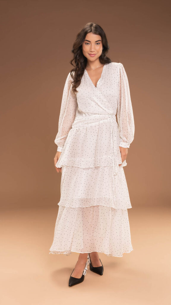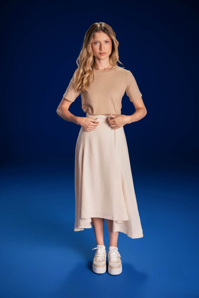 Tem o caimento fluido e suave, realçando as formas do corpo de maneira discreta e elegante.