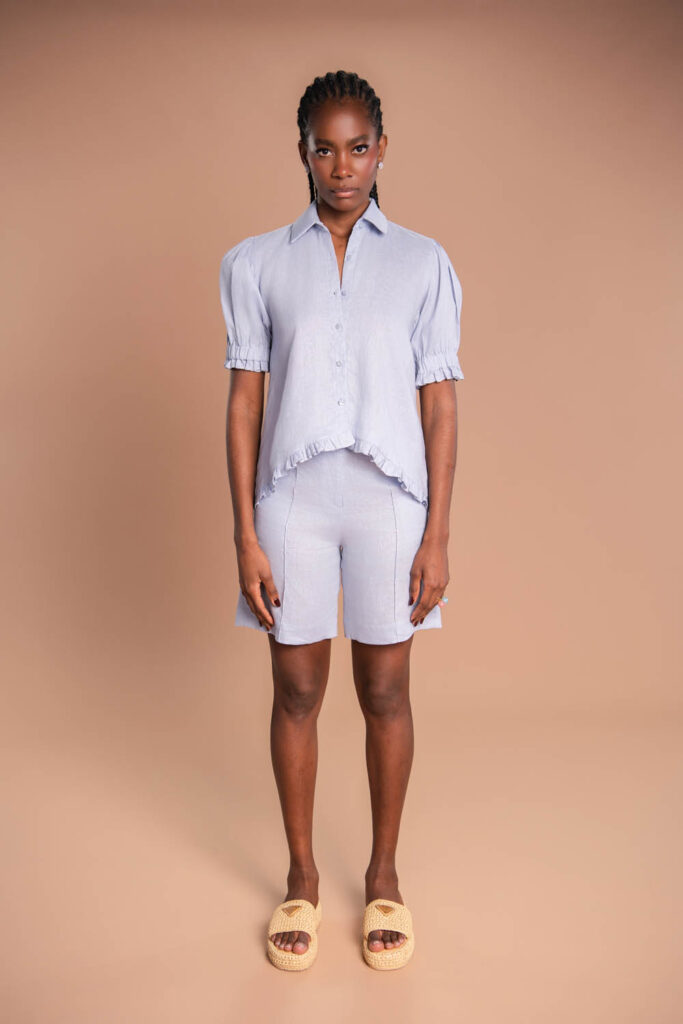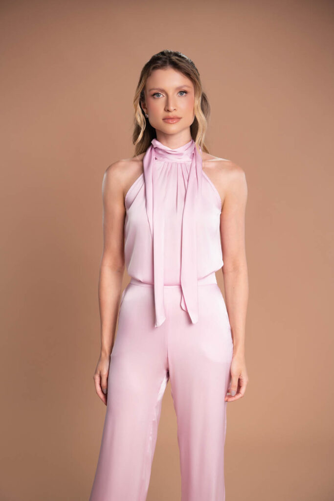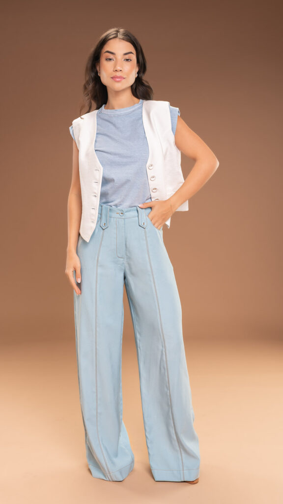 Conjunto feito em tecido leve, fino, delicado e com toque macio.