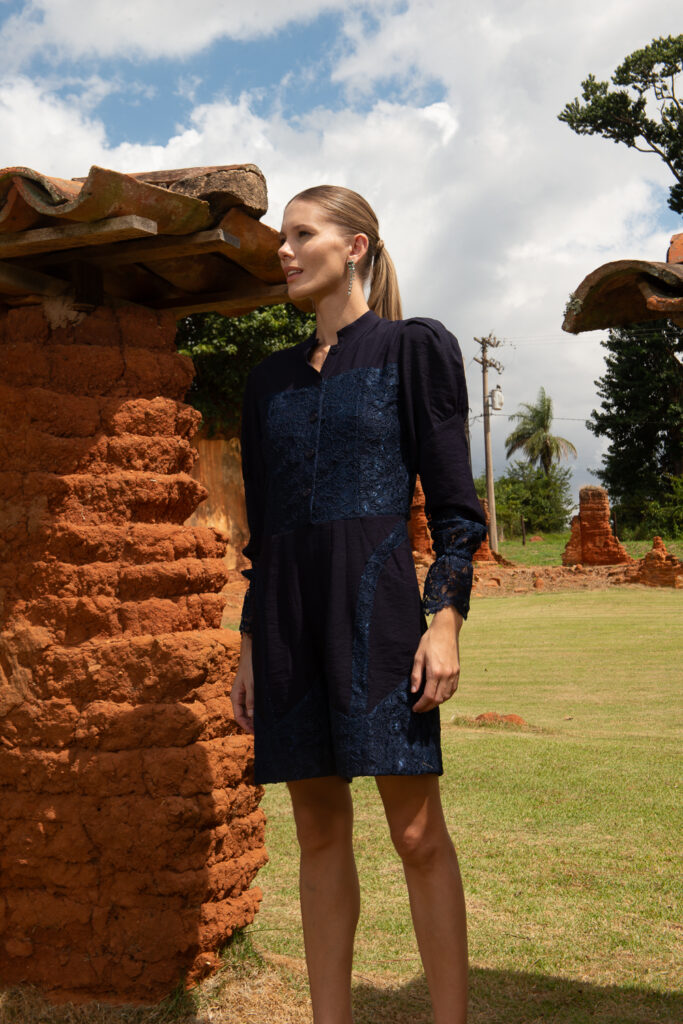 MACACAO RENDA MANGA BUFANTE MARINHO
