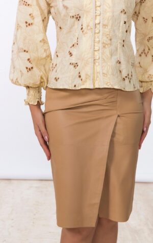 A Saia de Couro Legítimo com Fenda e Pregas é perfeita para quem busca um visual marcante sem abrir mão da elegância.