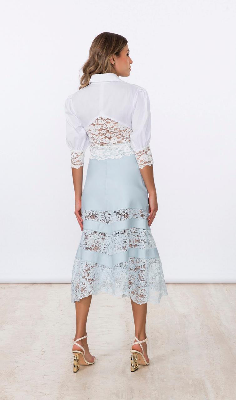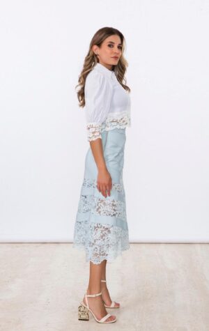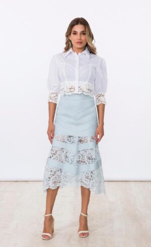 SAIA COURO PARIS RECORTES RENDA AZUL PASTEL