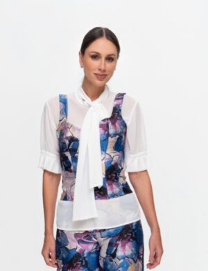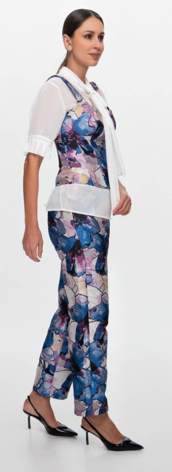 Feito com tecido jacquard de alta qualidade, este top oferece textura sofisticada e caimento impecável.