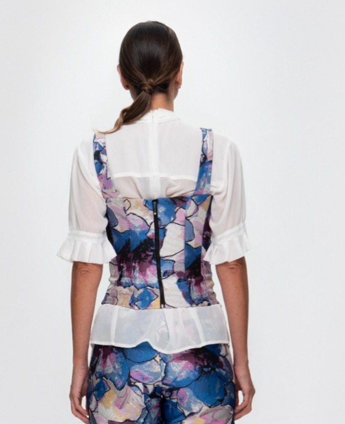 Destaque-se com elegância usando nosso Top Jacquard Azul!