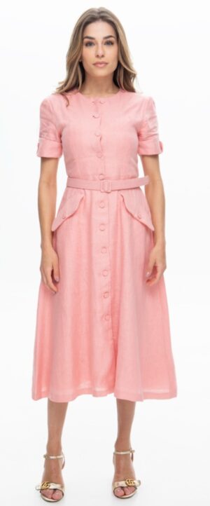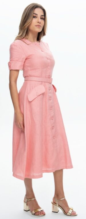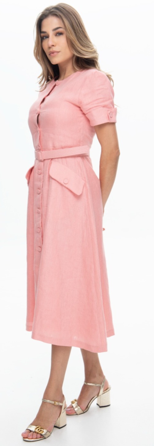 VESTIDO BOTÕES LINHO ROSA