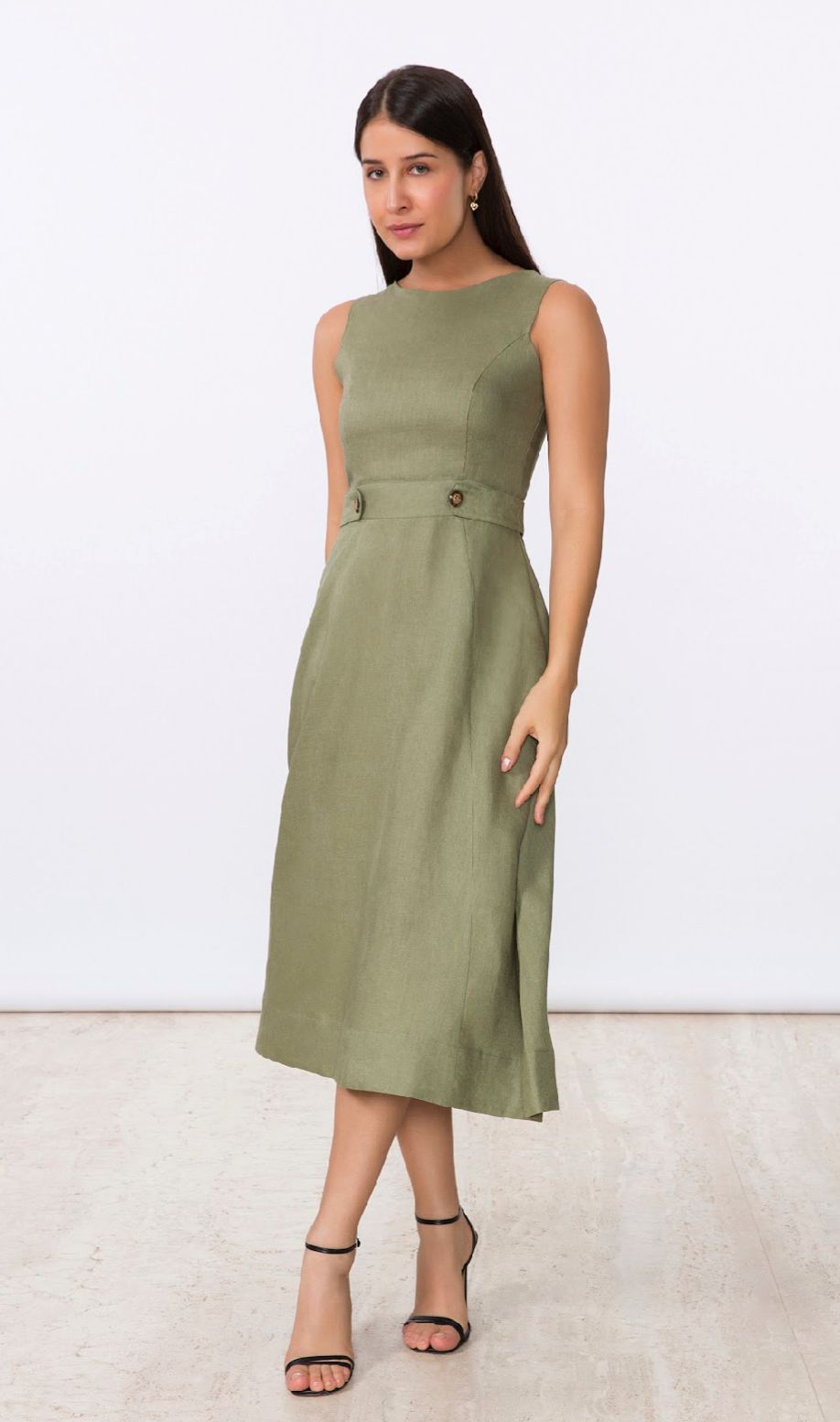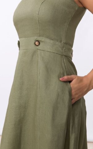 Caimento de linho e na cor Verde Selva, ideal para usar com rasteirinhas, sandálias, uma peça super delicada.